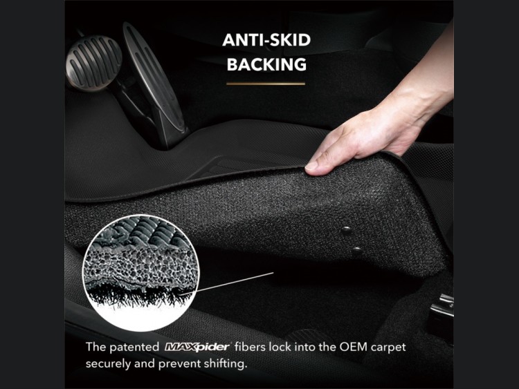 The KAGU Combo flooring set, adorned in an exquisite black finish, is meticulously crafted to elevate the luxurious ambiance of your Maserati. Engineered from top-tier materials, these liners boast a unique 3-layer construction aimed at delivering supreme performance. Each layer fulfills a specific imperative: the top surface layer boasts a striking texture that efficiently captures dirt and moisture; the middle layer, comprised of semi-hard XPE foam, cushions foot impact while minimizing fatigue; and the patented MAXpider fiber backing ensures the mats remain firmly in place without harming the original carpet.